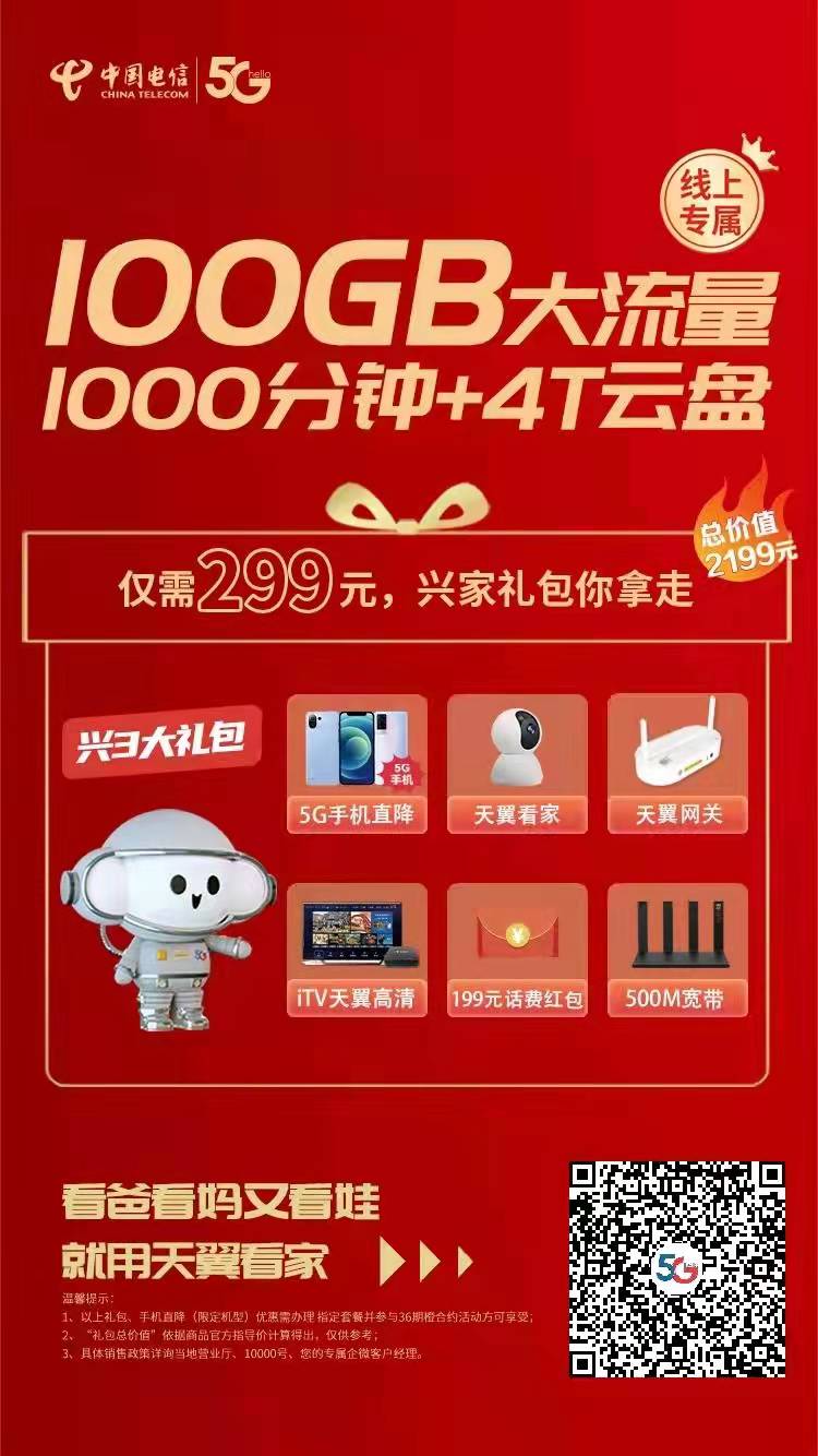 80G大流量+500分钟+4T云盘